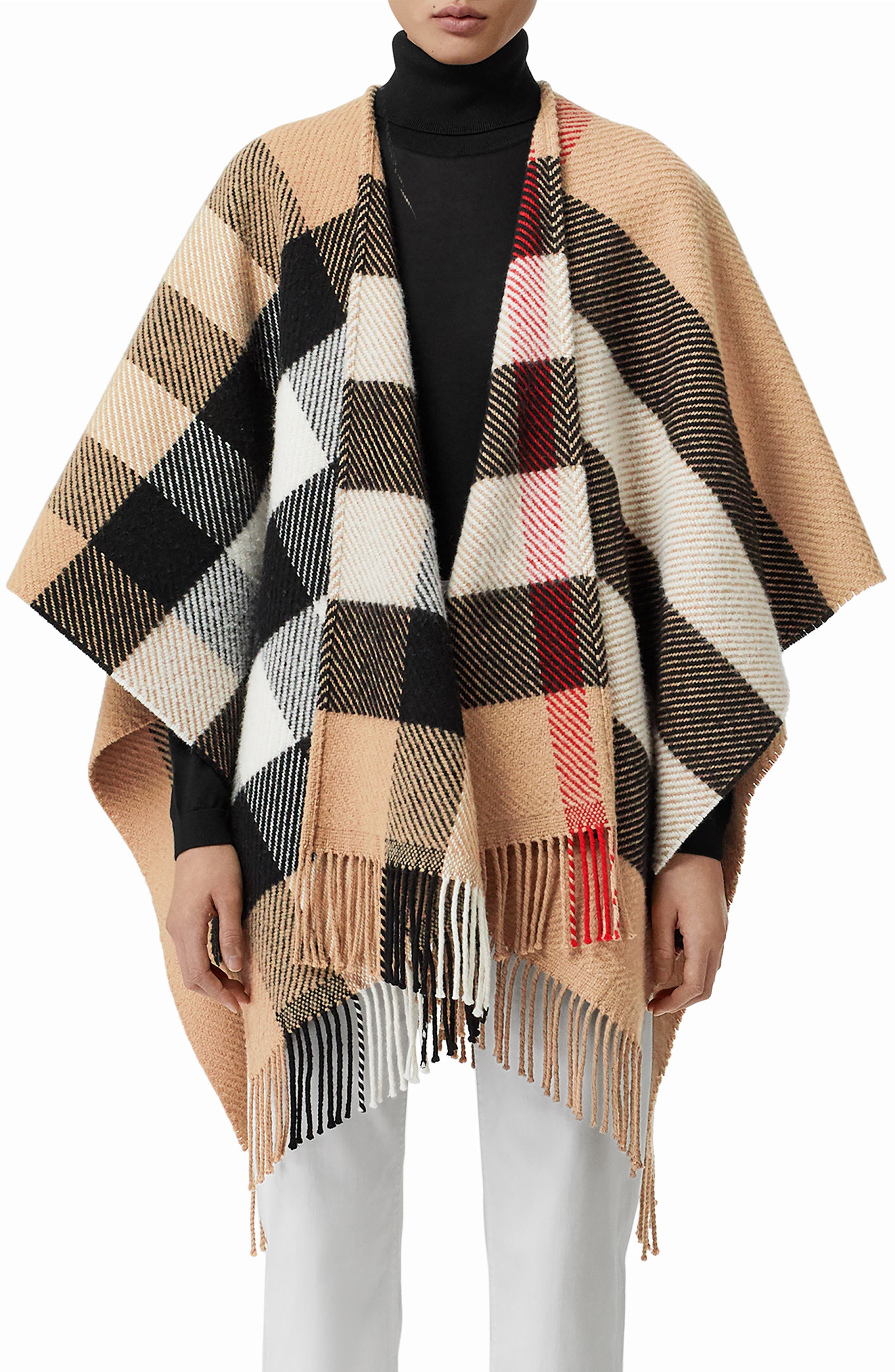 Burberry Camel Check Poncho Details Cart - Loading products from burberry we think you'll be interested in sorry, there are no more results to display.. Since then, the brand has offered fresh takes on its signature styles—making it one of the most recognizable companies on the planet. Half mega check cashmere scarf. Reversible vintage check cashmere wool poncho in sandstone. Shop ponchos, wraps & capes for women from burberry. With tags burberry blue/red giant check cashmere/wool scarf $425.00.