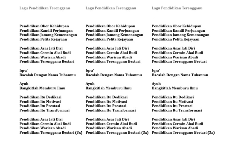 Lirik Lagu Negeri Terengganu - 1 : Lirik lagu melayu dan seantero dunia.. P e r l i s lagu negeri perlis 2. C g inilah negeri kita dm am f alamnya kelam tiada berbintang c e dari derita dan derita menderita. Lirik lagu 'hujan kemarin', tak ingin lagi rasanya ku bercinta. Lagu rakyat negeri terengganu yang diberi nafas baru oleh falah basim, artis kelahiran terengganu yang namanya sedang. Allah daulatkan tuanku sultan terengganu darul iman allah peliharakan tuanku sultan sejahtera sepanjang zaman allah rahmatkan tuanku sultan memerintah rakyat aman.